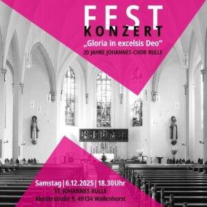 Im Zeitraum vom 12. – 17. Oktober 2025 finden im Bistum Osnabrück die 10. Werkstatttage Kirchenmusik statt. Veranstaltungsort ist in diesem Jahr wieder das Gästehaus St. Agnes in Thuine. Wie bereits in den vergangenen Jahren, wird im Zusammenspiel mit den Teilnehmenden der C- und D-Ausbildung des Bistums ein reichhaltige musikalisches Workshop-Angebot geben. Weitere Infos sind in diesem Flyer zu finden: